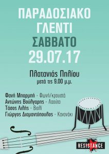 21:00: Παραδοσιακό γλέντι με τους: Φανή Μπαρμπή (φωνή/κρουστά), Αντώνη Βούλγαρη (λαούτο), Τάσο Λιλή (βιολί), Γιώργο Διαμαντόπουλο (κανονάκι)
